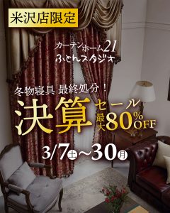 直営店【米沢店】にて「決算セール」開催!3/30まで