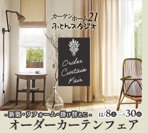 ただいま直営店カーテンホーム21におきまして、「オーダーカーテンフェア」を開催しております。
